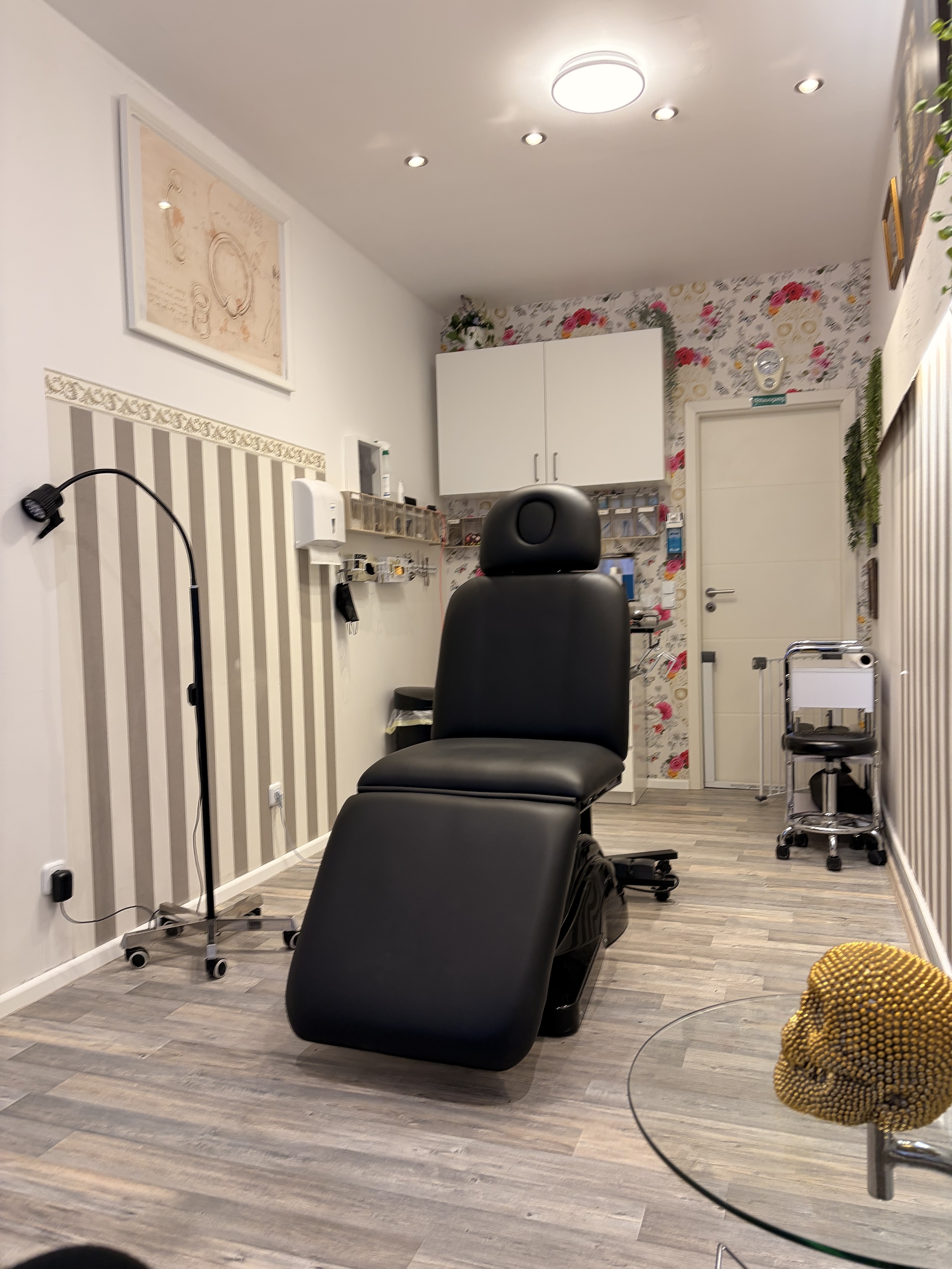 Das Studio ist kein geeigneter Ort für Kinder, Kinderwagen/Karren und Tiere. Kinder können nicht mit in den Behandlungsraum und müssen vorne im Laden von einer anderen Person beaufsichtigt werden und leise sein, weil ich mit sehr scharfen Gegenständen an Menschen arbeite und sich Glasvitrinen im Geschäft befinden etc..